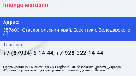 Imango, магазин по адресу 357600, Ставропольский край, Ессентуки, Володарского, 44 в дальнейшем Организация, размещена в следующих категориях: