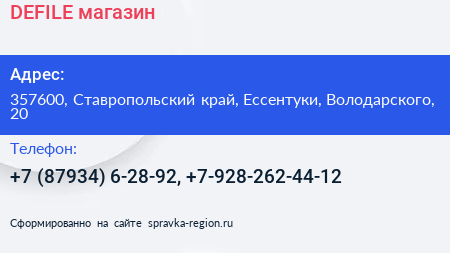 DEFILE, магазин по адресу 357600, Ставропольский край, Ессентуки, Володарского, 20 в дальнейшем Организация, размещена в следующих категориях: