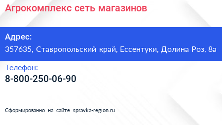 Агрокомплекс, сеть магазинов по адресу 357635, Ставропольский край, Ессентуки, Долина Роз, 8а в дальнейшем Организация, размещена в следующих категориях: