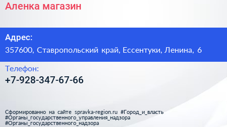 Аленка, магазин по адресу 357600, Ставропольский край, Ессентуки, Ленина, 6 в дальнейшем Организация, размещена в следующих категориях: