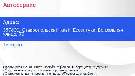 Автосервис по адресу 357600, Ставропольский край, Ессентуки, Вокзальная улица, 75 в дальнейшем Организация, размещена в следующих категориях: