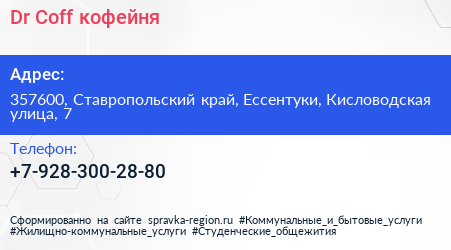 Dr.Coff, кофейня по адресу 357600, Ставропольский край, Ессентуки, Кисловодская улица, 7 в дальнейшем Организация, размещена в следующих категориях: