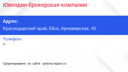 Ювендин, брокерская компания по адресу Краснодарский край, Ейск, Армавирская, 45 в дальнейшем Организация, размещена в следующих категориях: