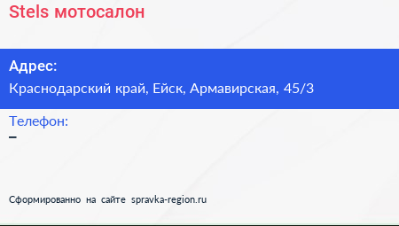 Stels, мотосалон по адресу Краснодарский край, Ейск, Армавирская, 45/3 в дальнейшем Организация, размещена в следующих категориях:
