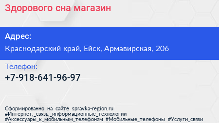 Здорового сна, магазин по адресу Краснодарский край, Ейск, Армавирская, 206 в дальнейшем Организация, размещена в следующих категориях: