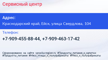 Сервисный центр по адресу Краснодарский край, Ейск, улица Свердлова, 104 в дальнейшем Организация, размещена в следующих категориях: