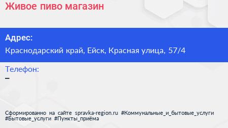 Живое пиво, магазин по адресу Краснодарский край, Ейск, Красная улица, 57/4 в дальнейшем Организация, размещена в следующих категориях: