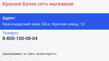 Красное & Белое, сеть магазинов по адресу Краснодарский край, Ейск, Красная улица, 53 в дальнейшем Организация, размещена в следующих категориях: