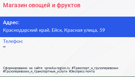 Магазин овощей и фруктов по адресу Краснодарский край, Ейск, Красная улица, 59 в дальнейшем Организация, размещена в следующих категориях:
