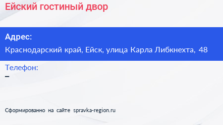 Ейский гостиный двор по адресу Краснодарский край, Ейск, улица Карла Либкнехта, 48 в дальнейшем Организация, размещена в следующих категориях: