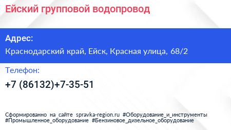 Ейский групповой водопровод по адресу Краснодарский край, Ейск, Красная улица, 68/2 в дальнейшем Организация, размещена в следующих категориях: