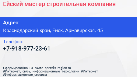 Ейский мастер, строительная компания по адресу Краснодарский край, Ейск, Армавирская, 45 в дальнейшем Организация, размещена в следующих категориях: