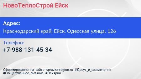 НовоТеплоСтрой Ейск по адресу Краснодарский край, Ейск, Одесская улица, 126 в дальнейшем Организация, размещена в следующих категориях: