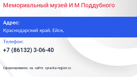 Мемориальный музей И.М. Поддубного по адресу Краснодарский край, Ейск, в дальнейшем Организация, размещена в следующих категориях: