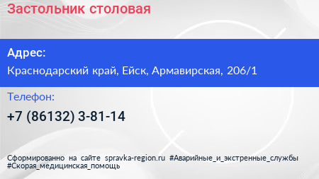 Застольник, столовая по адресу Краснодарский край, Ейск, Армавирская, 206/1 в дальнейшем Организация, размещена в следующих категориях: