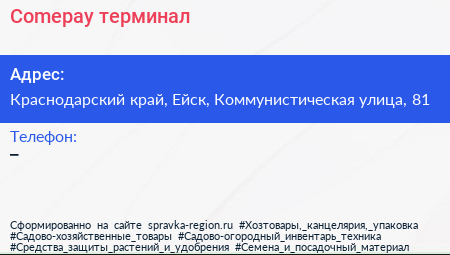 Comepay, терминал по адресу Краснодарский край, Ейск, Коммунистическая улица, 81 в дальнейшем Организация, размещена в следующих категориях: