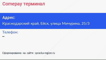 Comepay, терминал по адресу Краснодарский край, Ейск, улица Мичурина, 25/3 в дальнейшем Организация, размещена в следующих категориях: