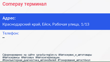 Comepay, терминал по адресу Краснодарский край, Ейск, Рабочая улица, 1/13 в дальнейшем Организация, размещена в следующих категориях: