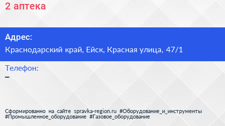 №2, аптека по адресу Краснодарский край, Ейск, Красная улица, 47/1 в дальнейшем Организация, размещена в следующих категориях: