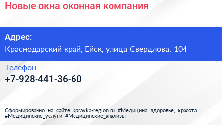 Новые окна, оконная компания по адресу Краснодарский край, Ейск, улица Свердлова, 104 в дальнейшем Организация, размещена в следующих категориях: