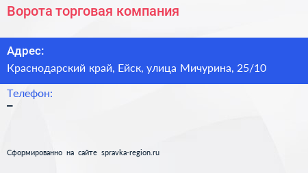 Ворота, торговая компания по адресу Краснодарский край, Ейск, улица Мичурина, 25/10 в дальнейшем Организация, размещена в следующих категориях: