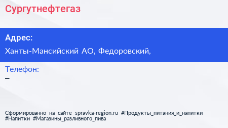 Сургутнефтегаз по адресу Ханты-Мансийский АО, Федоровский, в дальнейшем Организация, размещена в следующих категориях: