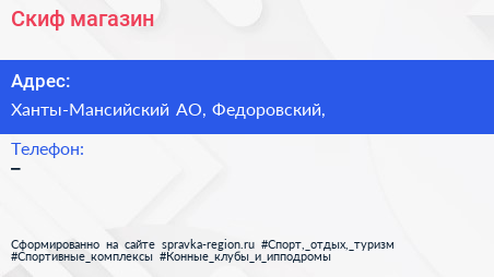Скиф, магазин по адресу Ханты-Мансийский АО, Федоровский, в дальнейшем Организация, размещена в следующих категориях: