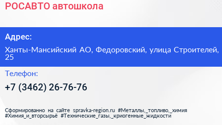 РОСАВТО, автошкола по адресу Ханты-Мансийский АО, Федоровский, улица Строителей, 25 в дальнейшем Организация, размещена в следующих категориях: