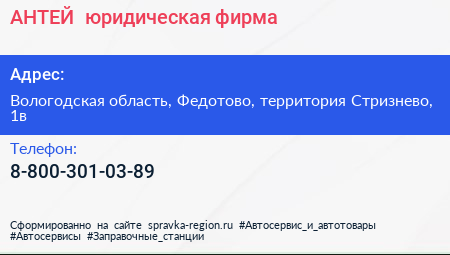 АНТЕЙ+, юридическая фирма по адресу Вологодская область, Федотово, территория Стризнево, 1в в дальнейшем Организация, размещена в следующих категориях:
