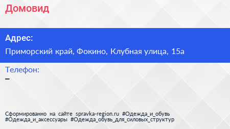 Домовид по адресу Приморский край, Фокино, Клубная улица, 15а в дальнейшем Организация, размещена в следующих категориях: