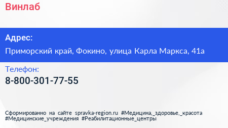Винлаб по адресу Приморский край, Фокино, улица Карла Маркса, 41а в дальнейшем Организация, размещена в следующих категориях:
