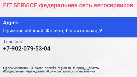 FIT SERVICE, федеральная сеть автосервисов по адресу Приморский край, Фокино, Госпитальная, 9 в дальнейшем Организация, размещена в следующих категориях: