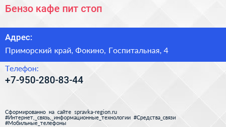 Бензо-кафе, пит-стоп по адресу Приморский край, Фокино, Госпитальная, 4 в дальнейшем Организация, размещена в следующих категориях: