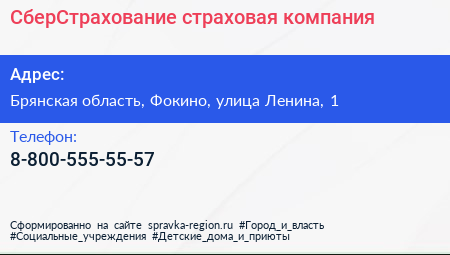 СберСтрахование, страховая компания по адресу Брянская область, Фокино, улица Ленина, 1 в дальнейшем Организация, размещена в следующих категориях: