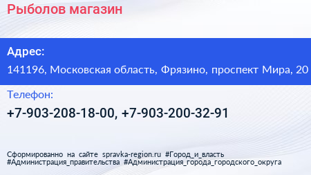 Рыболов, магазин по адресу 141196, Московская область, Фрязино, проспект Мира, 20 в дальнейшем Организация, размещена в следующих категориях: