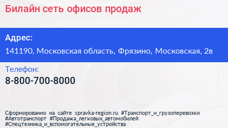 Билайн, сеть офисов продаж по адресу 141190, Московская область, Фрязино, Московская, 2в в дальнейшем Организация, размещена в следующих категориях: