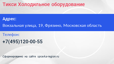 Тикси - Холодильное оборудование по адресу Вокзальная улица, 19, Фрязино, Московская область в дальнейшем Организация, размещена в следующих категориях: