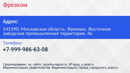 Фрезком по адресу 141190, Московская область, Фрязино, Восточная заводская промышленная территория, 4а в дальнейшем Организация, размещена в следующих категориях: