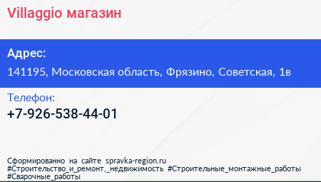 Villaggio, магазин по адресу 141195, Московская область, Фрязино, Советская, 1в в дальнейшем Организация, размещена в следующих категориях: