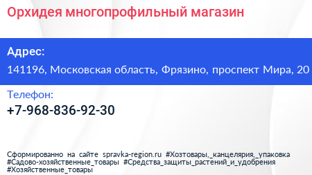 Орхидея, многопрофильный магазин по адресу 141196, Московская область, Фрязино, проспект Мира, 20 в дальнейшем Организация, размещена в следующих категориях: