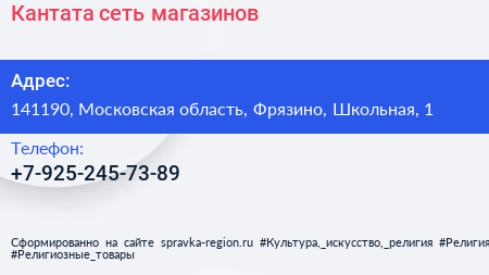 Кантата, сеть магазинов по адресу 141190, Московская область, Фрязино, Школьная, 1 в дальнейшем Организация, размещена в следующих категориях: