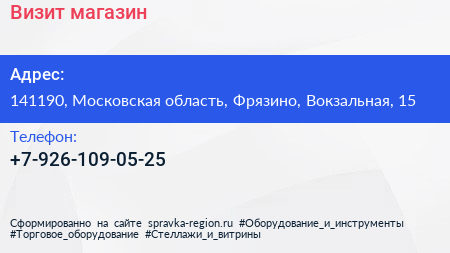 Визит, магазин по адресу 141190, Московская область, Фрязино, Вокзальная, 15 в дальнейшем Организация, размещена в следующих категориях: