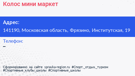 Колос, мини-маркет по адресу 141190, Московская область, Фрязино, Институтская, 19 в дальнейшем Организация, размещена в следующих категориях:
