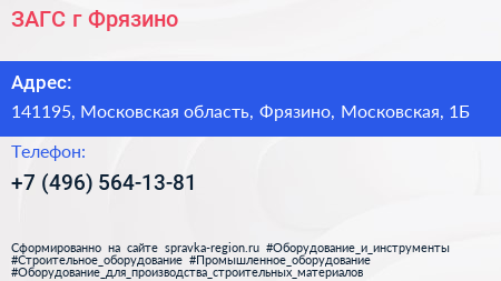 ЗАГС г. Фрязино по адресу 141195, Московская область, Фрязино, Московская, 1Б в дальнейшем Организация, размещена в следующих категориях: