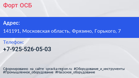 Форт ОСБ по адресу 141191, Московская область, Фрязино, Горького, 7 в дальнейшем Организация, размещена в следующих категориях: