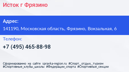 Исток, г. Фрязино по адресу 141190, Московская область, Фрязино, Вокзальная, 6 в дальнейшем Организация, размещена в следующих категориях: