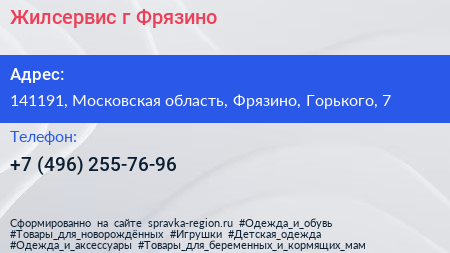 Жилсервис, г. Фрязино по адресу 141191, Московская область, Фрязино, Горького, 7 в дальнейшем Организация, размещена в следующих категориях: