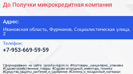 До Получки, микрокредитная компания по адресу Ивановская область, Фурманов, Социалистическая улица, 2 в дальнейшем Организация, размещена в следующих категориях: