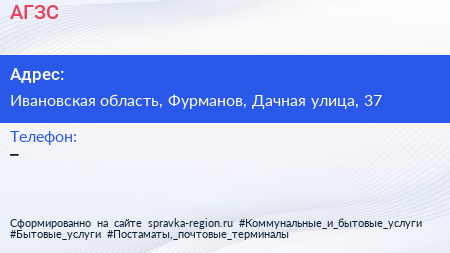 АГЗС по адресу Ивановская область, Фурманов, Дачная улица, 37 в дальнейшем Организация, размещена в следующих категориях: