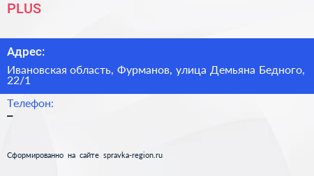 PLUS по адресу Ивановская область, Фурманов, улица Демьяна Бедного, 22/1 в дальнейшем Организация, размещена в следующих категориях: